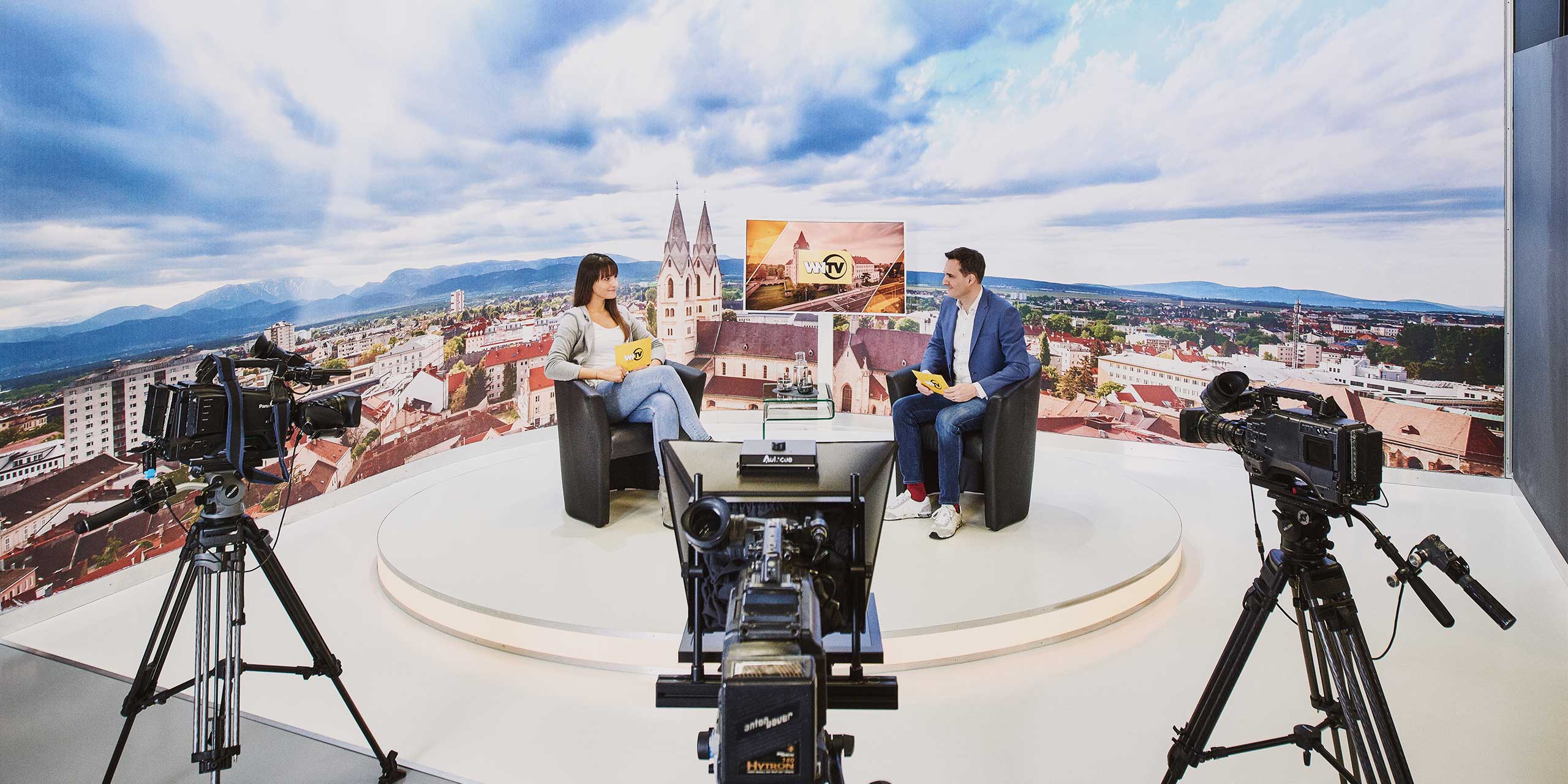 Im Zentrum von Wiener Neustadt betreibt WNTV das hauseigene TV-Studio auf über 300 m2 Gesamtfläche. In 4 Studiosetups über den Dächern der Stadt werden TV-Produktionen auf höchstem Niveau realisiert.